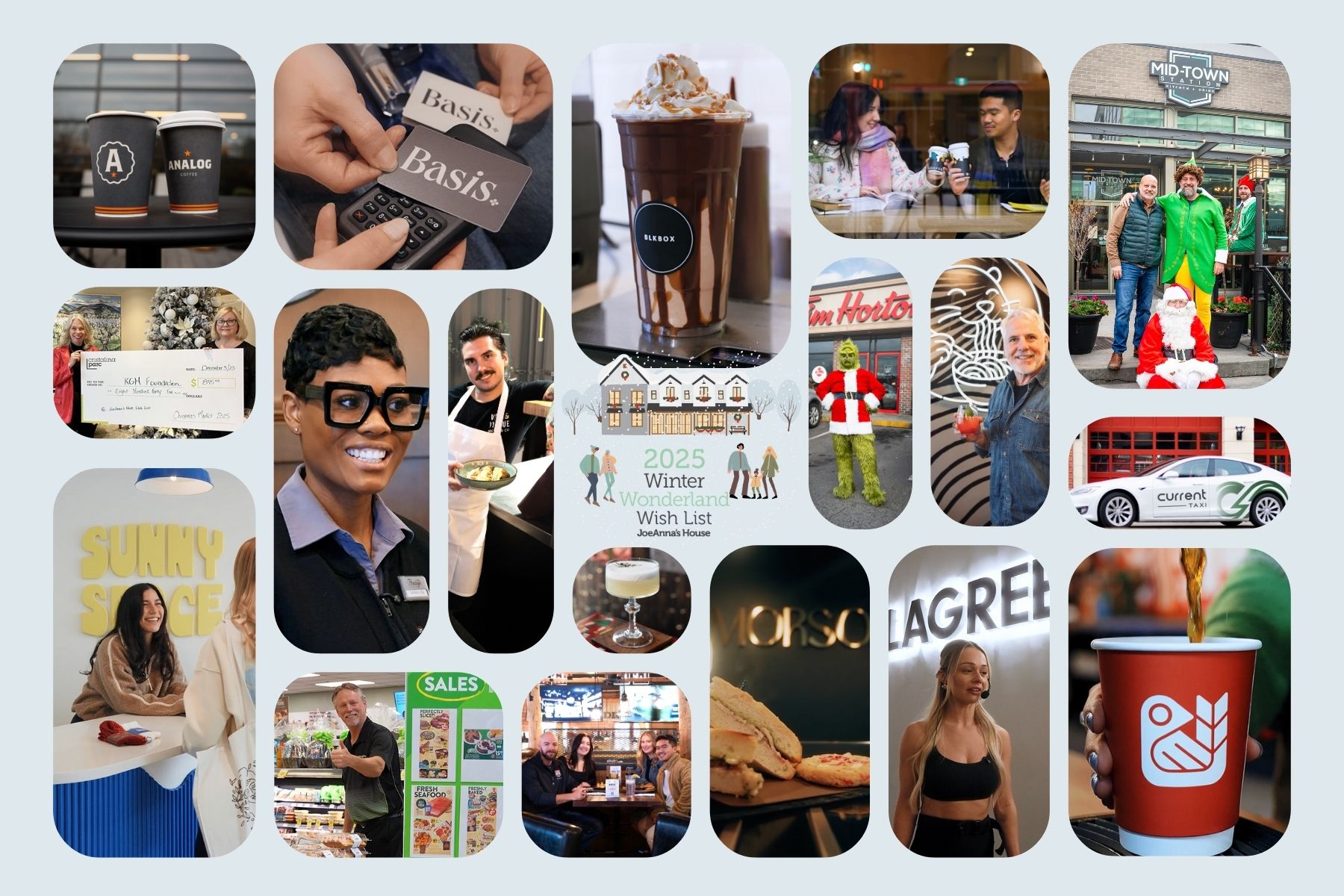 Nineteen local businesses participated, each designing their own unique “give back” in support of JoeAnna’s House. These ranged from donation-per-purchase models to percentage givebacks and creative in-store initiatives, all tailored to work within the realities of a challenging economic year. Businesses were not asked to take on additional financial strain, and customers were able to support JoeAnna’s House simply by continuing their normal holiday shopping habits. This switch in mindset ended up fundraising more for JoeAnna’s House than Winter Wonderland’s previous fundraising concept, a one-day community event. The businesses that participated in the Winter Wonderland Wish List and made this possible included Analog Coffee, Basis Medical Aesthetics , BLKBOX, Cristalina Parc, Current Taxi, Deville Coffee (Downtown), Fat Marmot (at Big White), Lagree Kelowna, Midtown Station, Montana’s BBQ, Morso, Red Bird Roasting, Prestige Hotel and Resorts, Pretty Not Bad, Reuter Kotler Real Estate Team, Save On Foods, Sunny Space Studio, Tim Horton’s (Smile Cookie Campaign), Vice & Virtue.